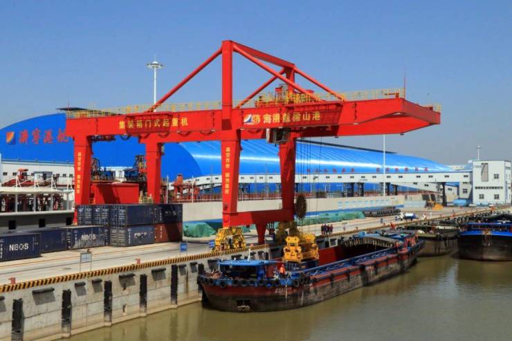 金乡县,中国大蒜之乡,润和肥业生产的化肥,装进集装箱,在跃进港码头上船,经京杭运河至镇江,过长江达上海,再经海运前往越南……