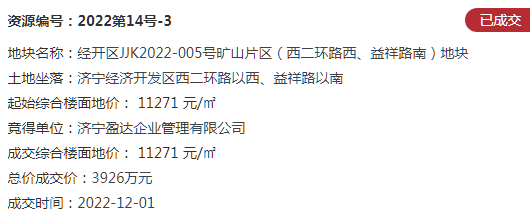 最高楼面价11271元/㎡!济宁城区3宗国有土地成功出让
