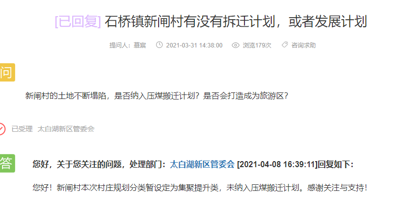 网友提问:新闸村的土地不断塌陷,是否纳入压煤搬迁计划?是否会打造成为旅游区?