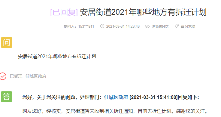 网友提问:安居街道2021年哪些地方有拆迁计划?