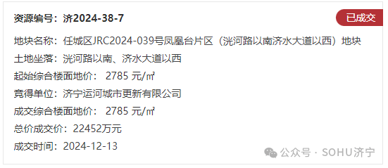地块七:任城区JRC2024-039号凤凰台片区(洸河路以南济水大道以西)地块【济宁运河城市更新有限公司竞得】