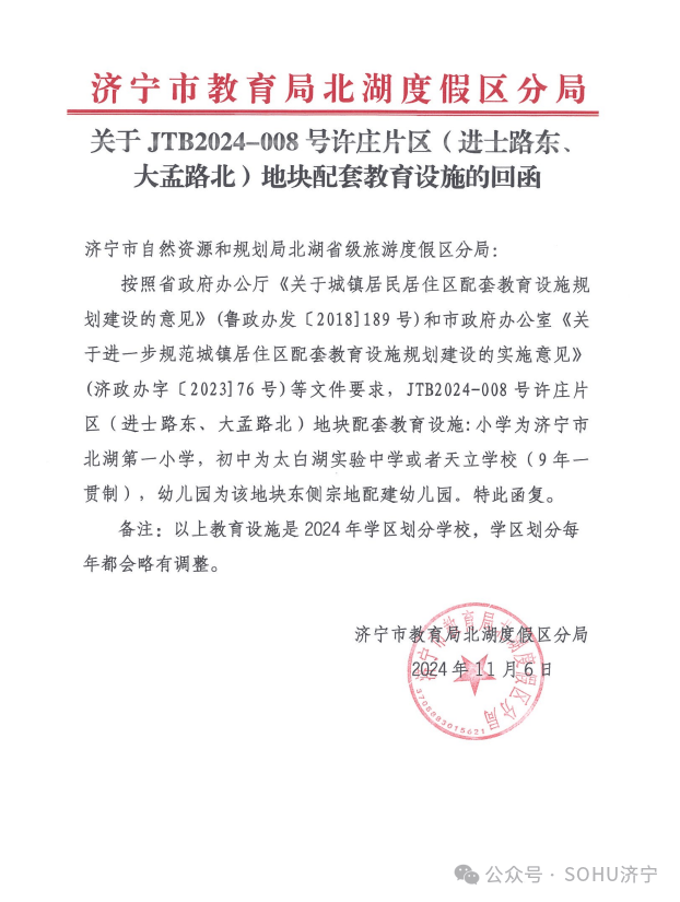 该地块位于太白湖新区许庄街道辖区内,宗地西侧为“我家就在岸上住”,是新区重点打造的文旅综合体项目。附近有幼儿园、天立学校,距离济宁医学院附属医院北湖院区、贵和购物中心较近,生活配套一应俱全。教育资源丰富,医疗条件齐备,周边有完善的路网,交通出行便利。