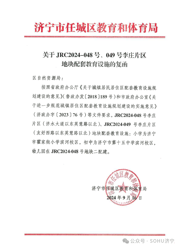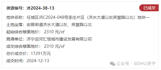 地块十三:任城区JRC2024-048号李庄片区(济水大道以东英慧路以北)地块一【济宁运河汇恒城市建设发展有限公司竞得】