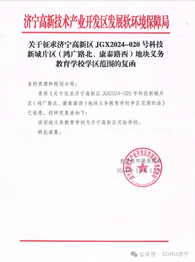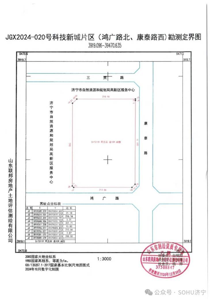 地块一:济宁高新区JGX2024-020号科技新城片区(鸿广路北康泰路西)地块【济宁和达投资有限公司竞得】