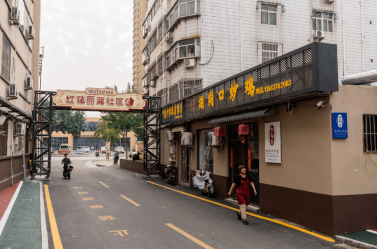 改造做法:红花丽苑分为南北两区,周边集中商业、住宅等优质资源,在进行老旧小区改造的同时,通过片区整合,进行商业街区更新,辐射周边商业需求,将南北两区间的街巷拓展改造为商业街,各类商铺、小吃一应俱全,构建15分钟生活圈,有了更多“烟火气”,激活了老城商业活力。