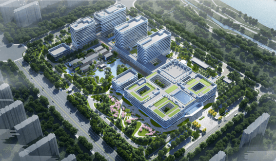 项目位于济宁市太白湖新区,东邻洸府河沿岸景观公园,环境优美;南邻公共配套服务用地,交通枢纽连通内环高架;北侧为医院发展备用地及规划居住用地;西邻城市快速路火炬路,交通便利。工程建设用地168亩,建设总面积约26.1万平方米,设计床位1300张,停车位2253个,主要建设内容为门诊医技及急诊楼、病房楼、传染楼、制剂楼、国医堂、科研教学楼和行政办公楼等。项目以打造辐射鲁苏豫皖中医医疗高地和国际中医药文化中心为定位。