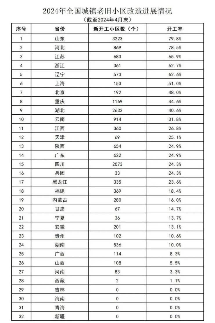 前4月全国新开工改造城镇老旧小区1.68万个,山东开工率79.8%