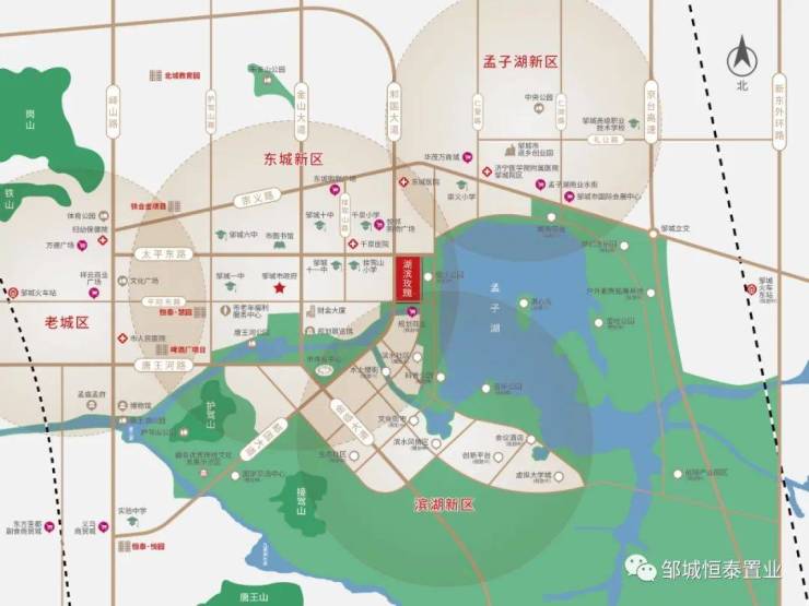 恒泰·湖滨玫瑰择址东城区与孟子湖新区的双区交汇处,临近邹城市政务中心,拥享23公里中心湖域和96万方城市公园,2公里范围内,医疗、商业、休闲纵享全域配套十分钟生活圈,衣食住行一站满足,配套醇熟,生活便利!孟子湖、邹城体育中心、唐王河,一湖双公园,景色独好,闲适自如。