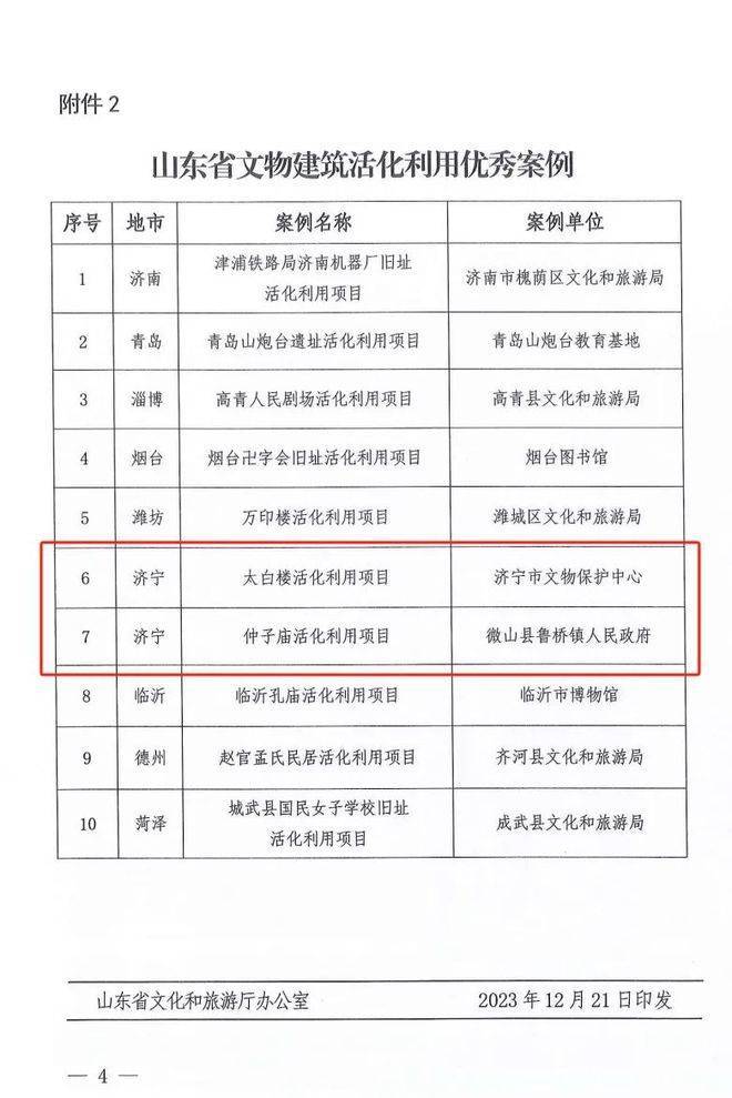 12月21日,山东省文化和旅游厅公布首批山东省文物建筑活化利用优秀案例,我市3个案例成功入选,入选案例数量全省第一。其中,上九山建筑群活化利用项目入选山东省“十佳案例”,太白楼活化利用项目、仲子庙活化利用项目入选山东省“优秀案例”。