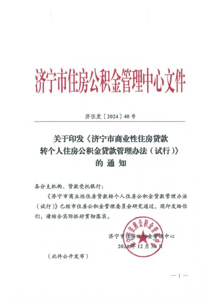 重磅!《济宁市商业性住房贷款转个人住房公积金贷款管理办法(试行)》发布