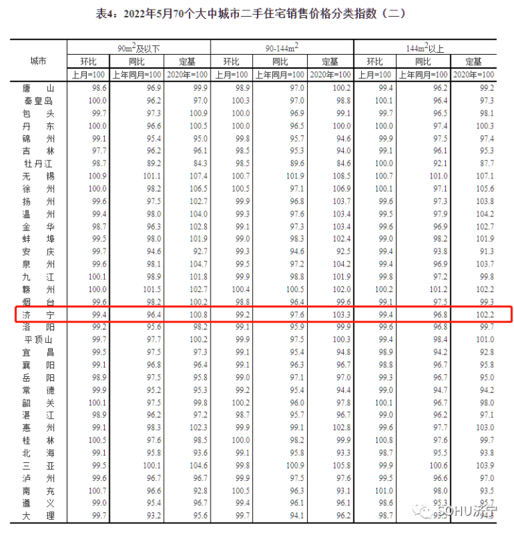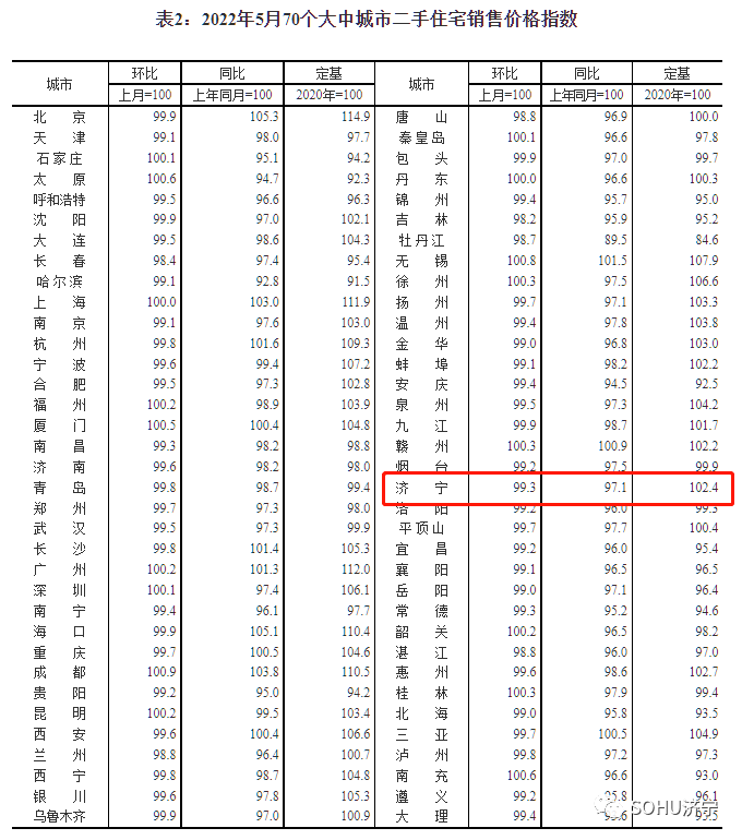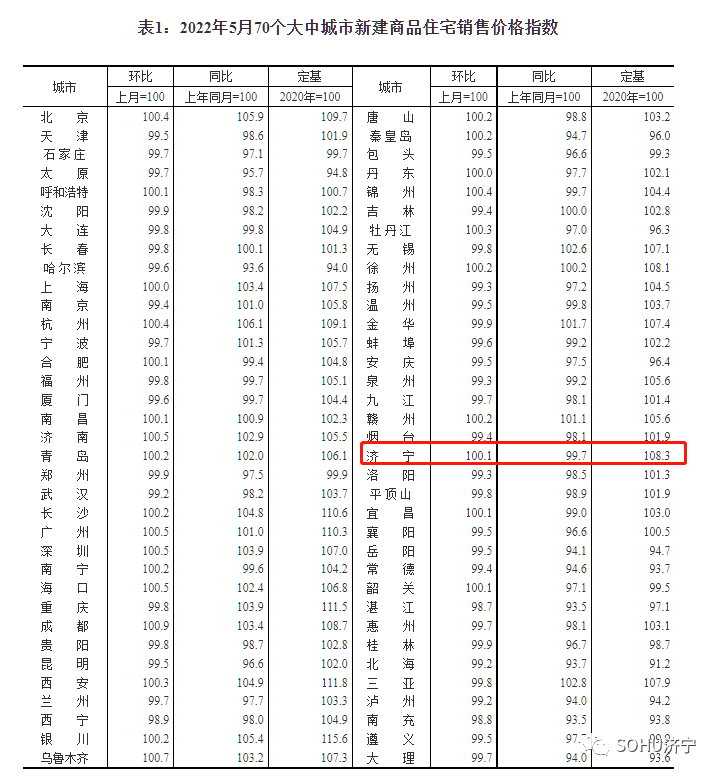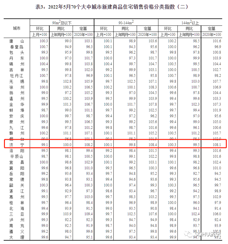 搜狐网济宁小编注意到:今早9点30分,国家统计局发布了2022年5月份70个大中城市商品住宅销售价格变动情况统计数据。2022年5月份济宁新建商品住宅销售价格环比涨幅0.1个百分点。