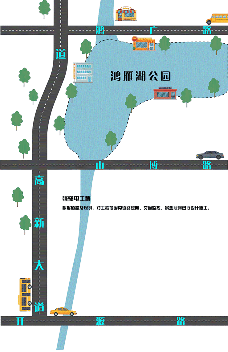 高新大道是蓼河新城的一条商业生活特色道路,沿线分布着企事业单位、居民区、医院、商业、公园和学校等,包括广安家园、法院、人才公寓、爱琴海购物公园、高新区文体中心、济宁技师学院、绿色家园、市第一人民医院、文博城、鸿雁湖、国滨府等,生活气息浓厚,道路的提升改造对于蓼河新城的城市品质提升和方便周边百姓的出行具有重要意义。