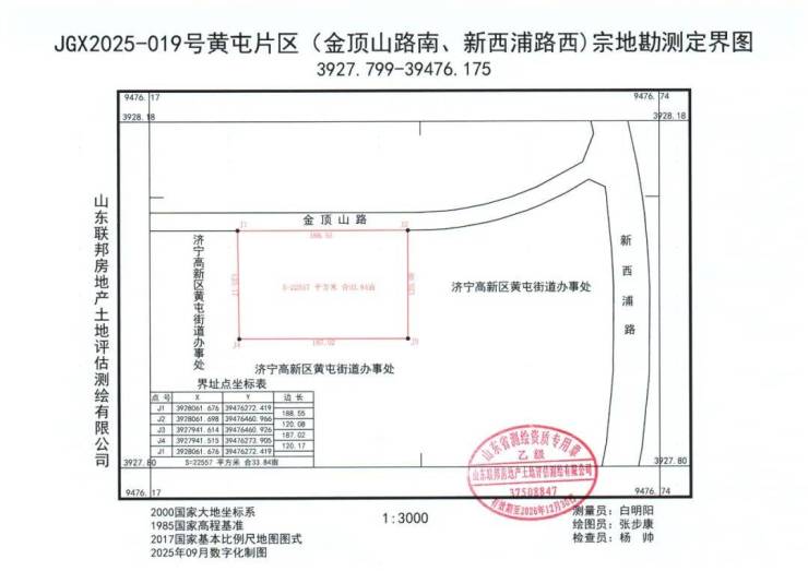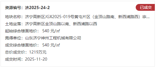 地块二:济宁高新区JGX2025-019号黄屯片区(金顶山路南、新西浦路西)宗地【山东济宁神州工程机械有限公司竞得】