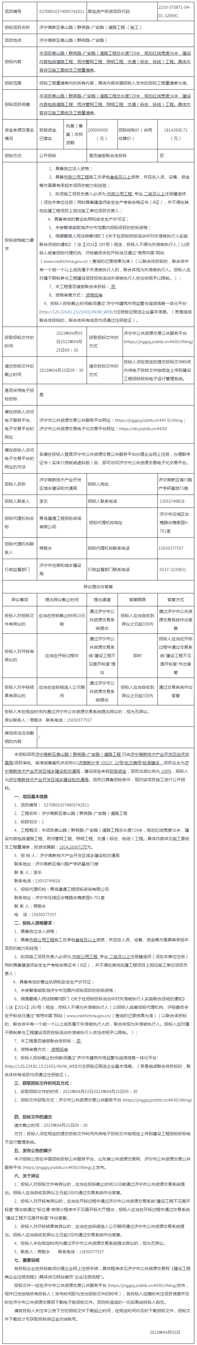 1814万!济宁高新区泰山路(群英路-广安路)道路施工招标