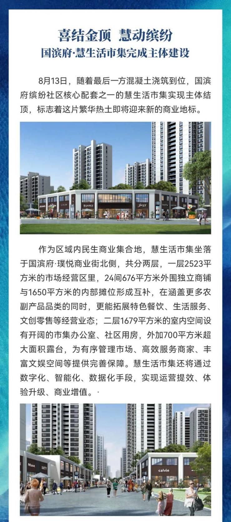 喜结金顶,慧动缤纷!华都国滨府慧生活市集完成主体建设