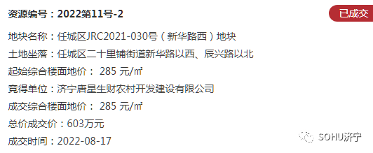 地块二:任城区JRC2021-030号(新华路西)地块【济宁唐星生财农村开发建设有限公司竞得】