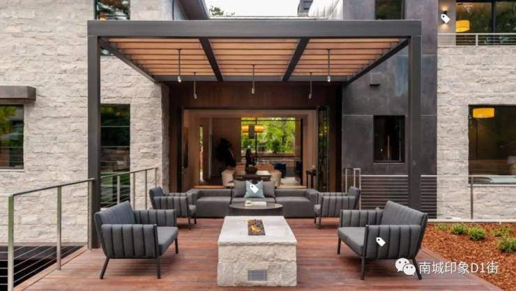 坡屋顶与格栅配以大面积落地玻璃幕墙