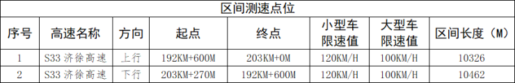 为进一步加强高速公路交通安全管理,规范行车秩序,预防和减少道路交通事故发生,依据《中华人民共和国道路交通安全法》、《中华人民共和国道路交通安全法实施条例》、《山东省高速公路设置应用区间测速指导依据》等法律法规及规定,济宁市公安局高速公路交通警察支队拟在辖区新增2处区间测速取证设备,现予以公示: