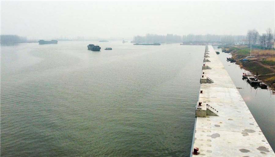 通行效率提高后,更多运输船队选择湖西航道。为了保障船队通行安全,工程还在二级坝以南配套建设了省内排名前列内河锚泊区。程章介绍,锚泊区全长1.5公里,现在可以为船舶提供免费靠泊的服务,恶劣天气状况下便是船舶停靠的安全岛。下一步锚泊区功能将不断完善,加水、维修、补给设施等都将配套,形成水上的综合服务驿站。