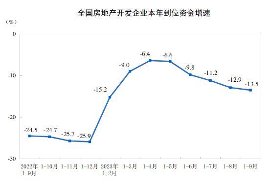 国家统计局:1-9月全国房地产开发投资87269亿元,同比下降9.1%