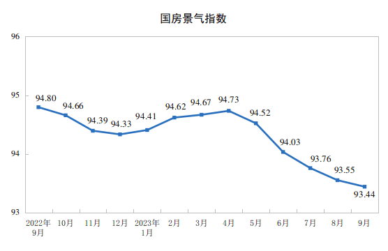 9月份,房地产开发景气指数(简称“国房景气指数”)为93.44。