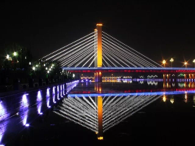 凯赛大桥位于济宁高新区洸河路东首的洸府河上,曾经是亚洲最小的斜拉桥,是济宁的标志性建筑之一。白天洁白挺拔,夜晚灯光璀璨,深受广大市民的喜爱。