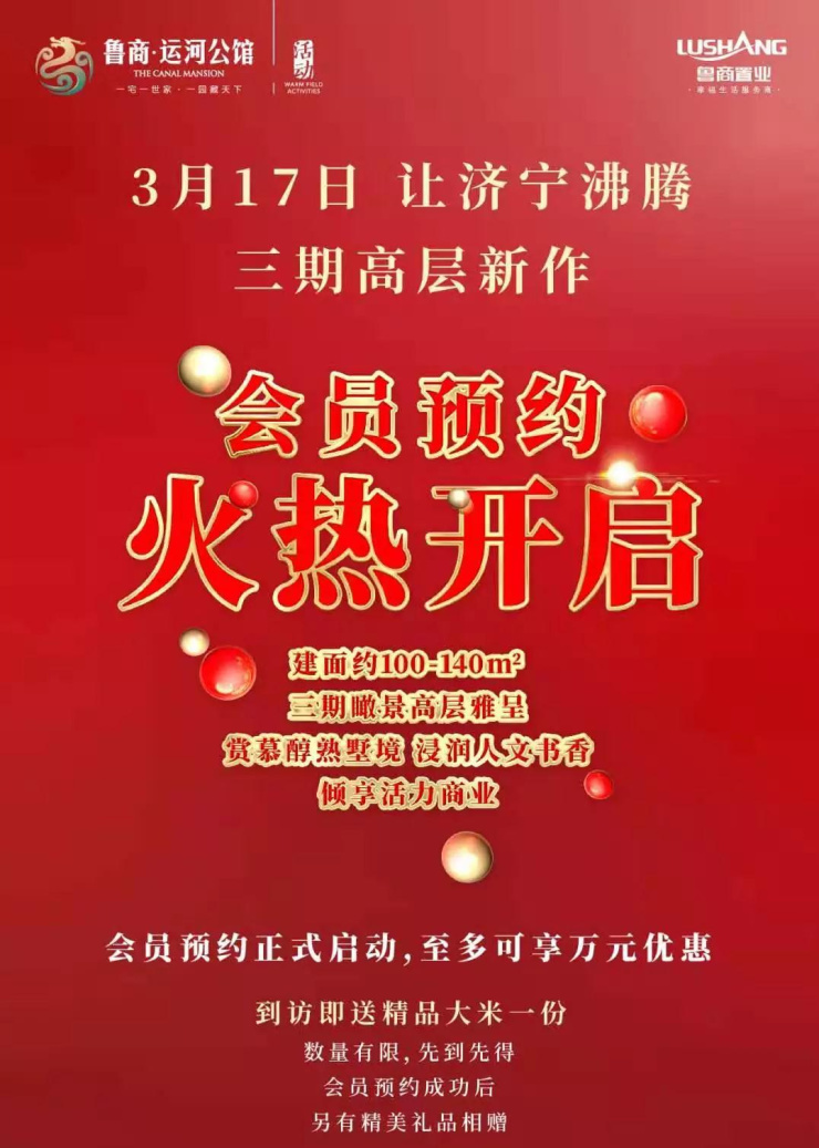 良机难觅,下手趁早!鲁商运河公馆三期高层会员预约在即