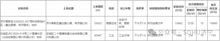 1. 济宁高新区JGX2023-027号科技新城片区(嘉达路南、祥济路东)地块:2024年6月18日9时00分至2024年6月28日9时00分;