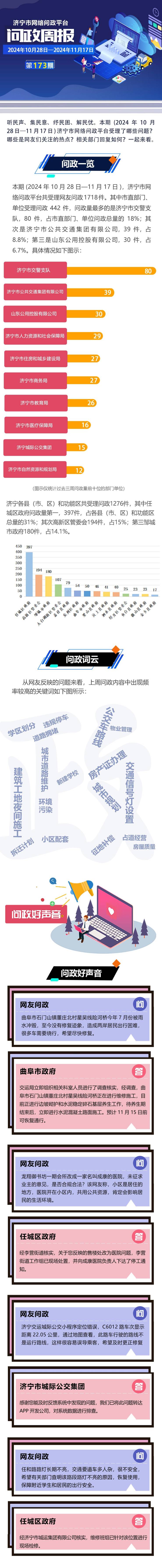 听民声、集民意、纾民困、解民忧。10月28日—11月17日,济宁市网络问政平台受理了哪些问题?哪些是网友们关注的热点?相关部门回复如何?一起来看。