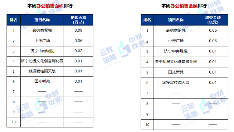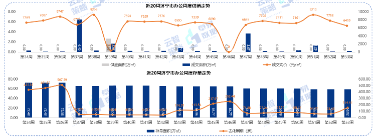据云智策略&卓易数据监测显示,第53周济宁市办公供应0万㎡,成交0.18万㎡,均价6499元/㎡,存量58.82万㎡。