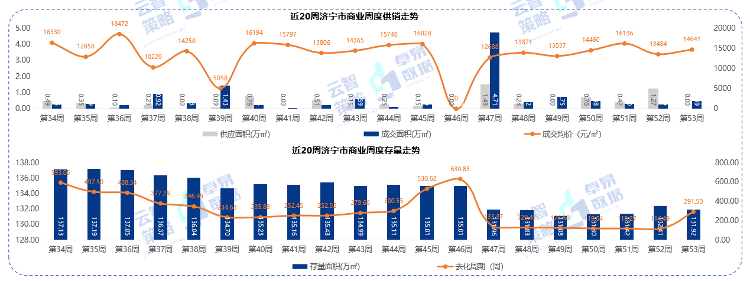据云智策略&卓易数据监测显示,第53周济宁市商业供应0万㎡,成交0.49万㎡,存量131.92万㎡。