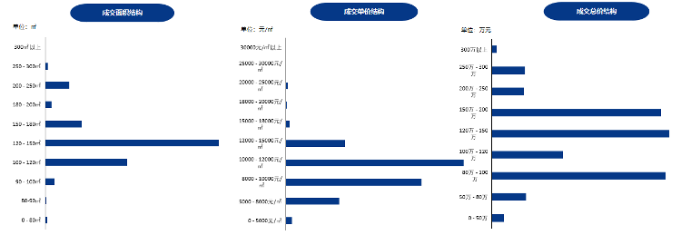 面积段:120-150㎡,占比51.6%,成交298套。