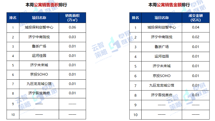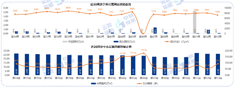 据云智策略&卓易数据监测显示,第53周济宁市公寓供应0万㎡,成交0.13万㎡,均价7266元/㎡,存量26.17万㎡。