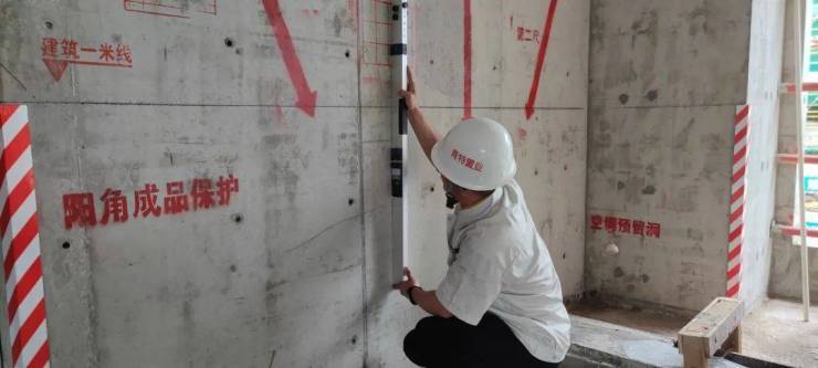 在项目建设过程中,混凝土浇筑前、拆模后都会有工程师排名前列时间进行垂直、平整、水平度极差、截面尺寸等各个维度的实测实量,一旦发现偏差,即刻采取有效整改措施及纠偏措施。