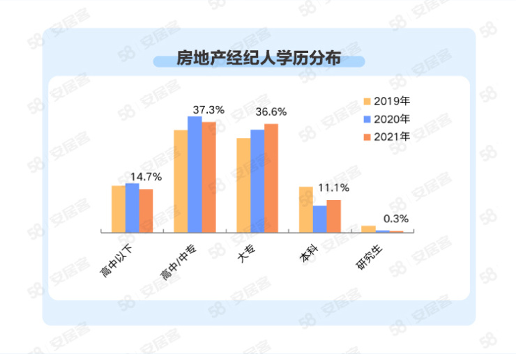 机构:半数房产经纪人为大专及本科学历,四成从业不到1年