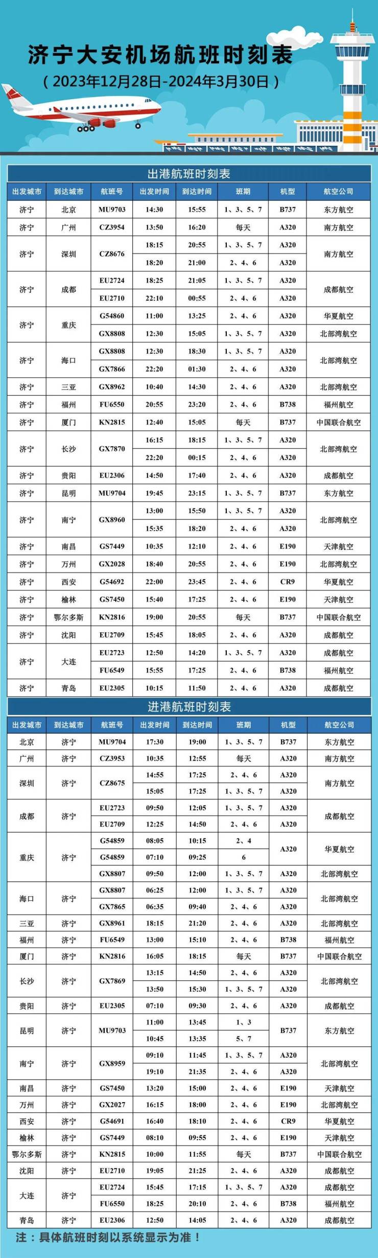 济宁大安机场将增加广州往返航班,每日加密至两班,为春节旅客提供便利。