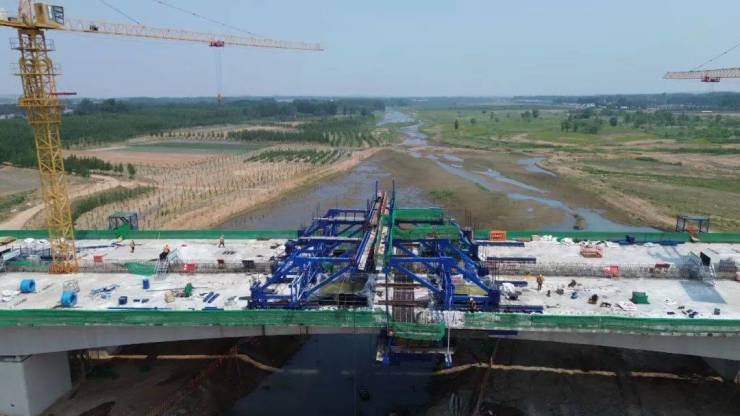 在莒县沭河大桥,随着大桥挂篮施工悬浇段顺利合龙,为后续桥面铺装、附属设施施工的开展奠定了坚实的基础。