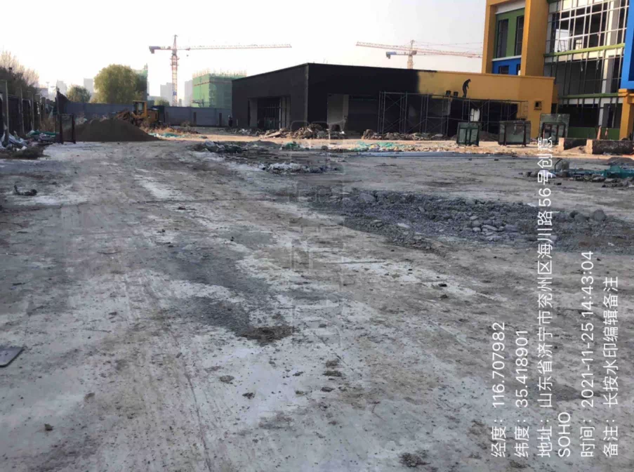 存在问题:1、硬化地面积尘严重;2、易扬尘建筑材料未覆盖。