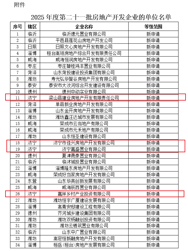 济宁6家!山东省2025年度第二十一批房地产开发企业资质名单发布