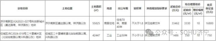 从2宗地块的具体分布上看,济宁高新区1宗,任城区1宗。从土地用途来看,1宗商服住宅用地、1宗工业用地。土地总面积为98272㎡,约147.4亩;总起始价为34948万元。