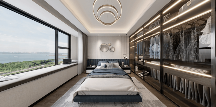 主卧套房空间,配备独立卫浴、景观飘窗设计,轩阔空间让居者身心放松,感受自我独处时的惬意优雅,尽享私密静谧。