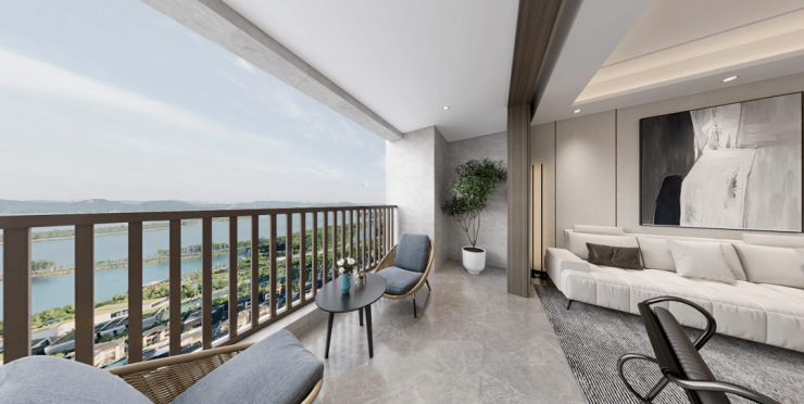 约7.3m面宽的光幕双阳台,直面景观,既满足生活洗衣收纳等基础功能,又畅享人生的酣畅风光。