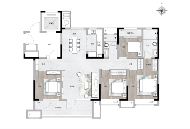 双阳台横厅布局,匹配居家生活多样化需求,莳花弄草、亲子时光、赏景品茗…无限延展家的生活意趣。