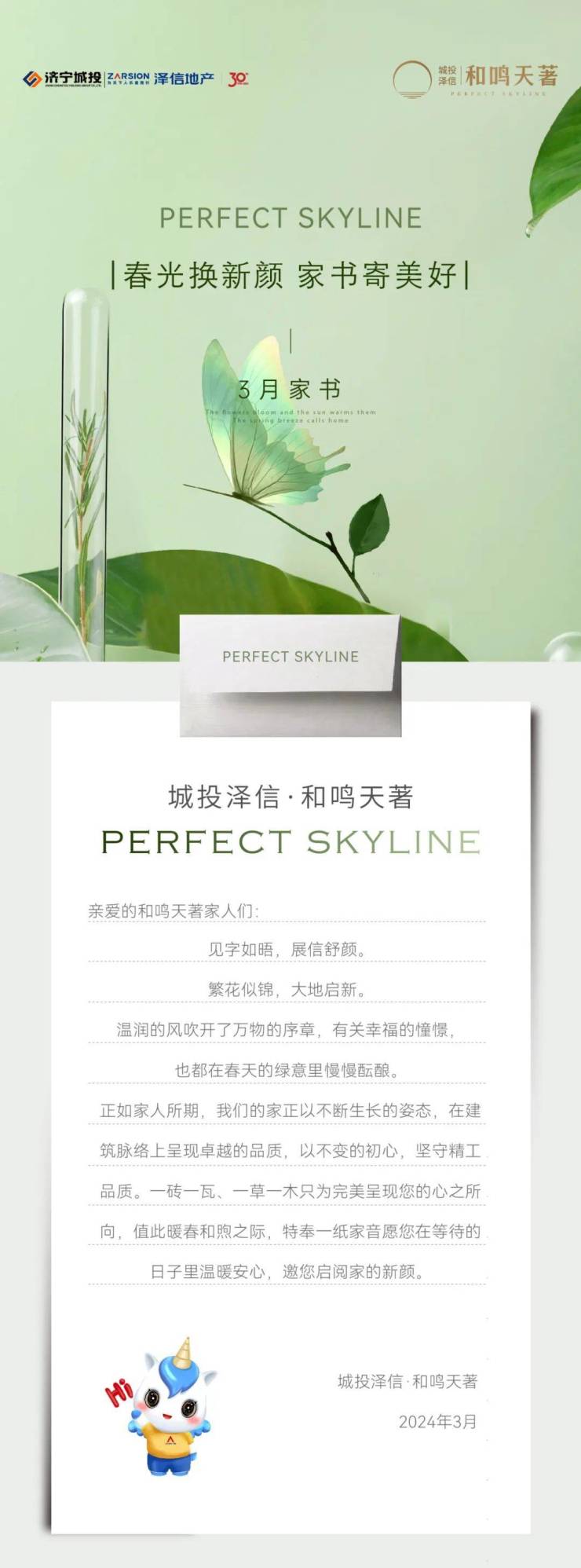 正如家人所期,城投泽信·和鸣天著正以不断生长的姿态,在建筑脉络上呈现卓越的品质,以不变的初心,坚守精工品质。一砖一瓦、一草一木只为完美呈现您的心之所向,值此暖春和煦之际,特奉一纸家音愿您在等待的日子里温暖安心,邀您启阅家的新颜。