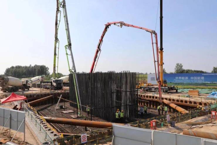 在济商高速(济宁段)项目施工现场,各种机械设备林立、车辆穿梭,施工人员紧张有序、干劲十足,工地一派热火朝天的繁忙景象。新万福河特大桥作为整个项目的控制性工程,9#主墩承台正在浇筑,比计划节点提前了2个多月。