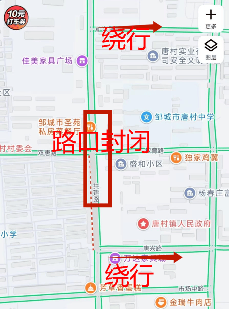 注意绕行!即日起,济宁市邹城市这一路段进行封闭施工