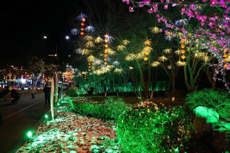 中心除在城区各主干道悬挂亮化彩灯外,还在人民公园、百花公园等公园绿地内,悬挂了1000余盏红灯笼,体现城市文明气息,弘扬中华民族优秀传统文化,展现节日温馨祥和气氛的春节景观,给市民更好的游玩体验,表达对新年的美好期盼。