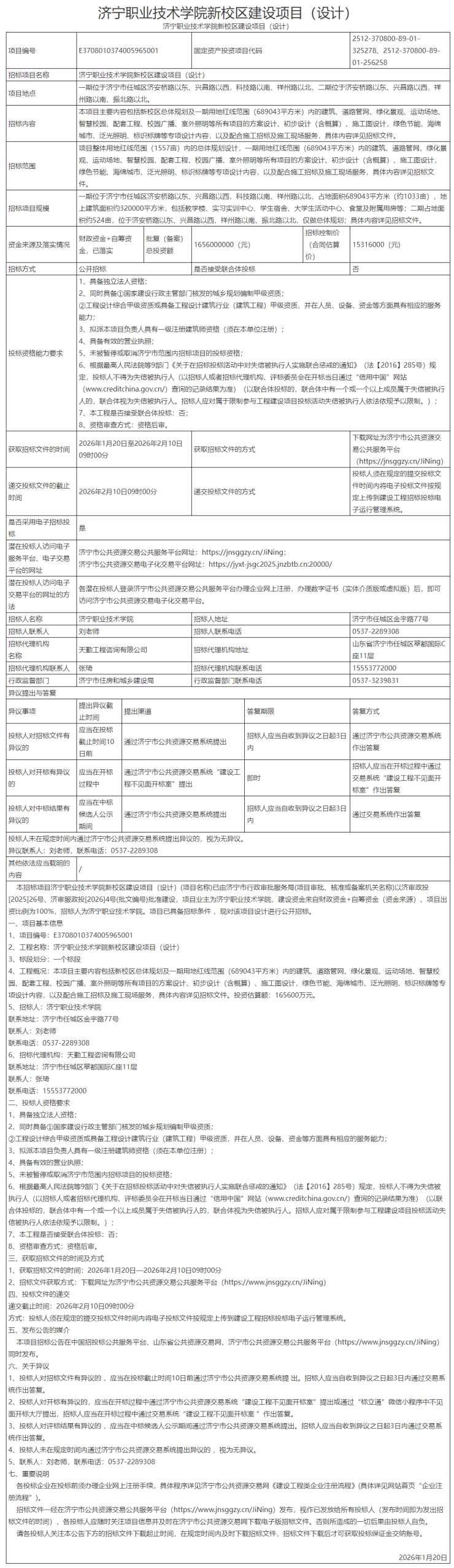 总投资约16.56亿元!济宁职业技术学院新校区建设项目招标