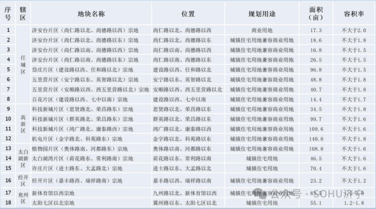 济宁经济技术开发区:6宗,面积159898平方米,约合239.84亩,占总面积的9.84%;