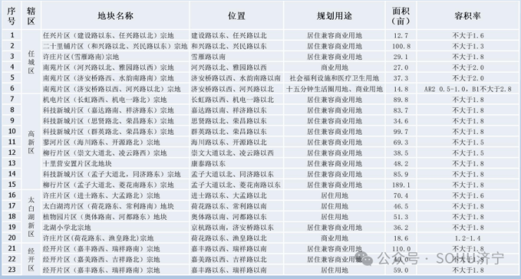 以下为济宁市城区公开出让的土地详情: